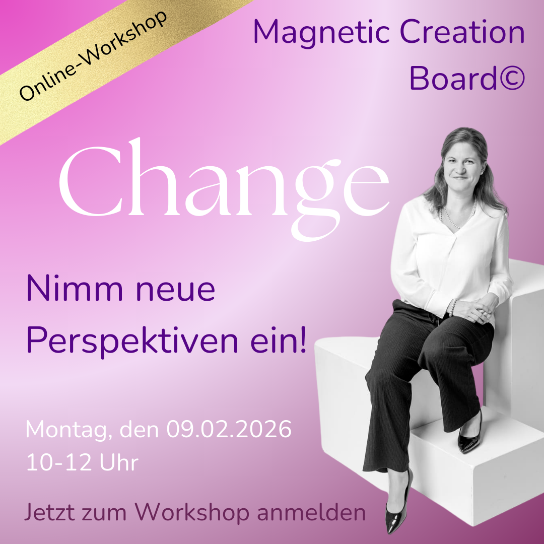 Unterstützt wirst du dabei von den Bausteinen dieser Methode, die deinen Selbstcoaching-Prozess am Magnetic Creation Board© begleiten. Sie unterstützen dich dabei, genau die Perspektive einzunehmen, die dir jetzt am meisten dient.