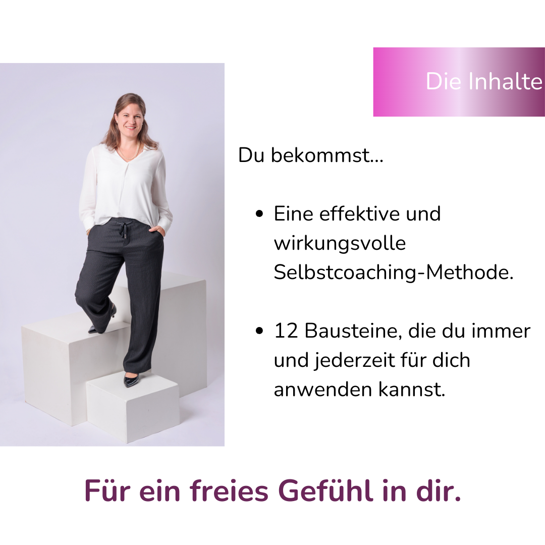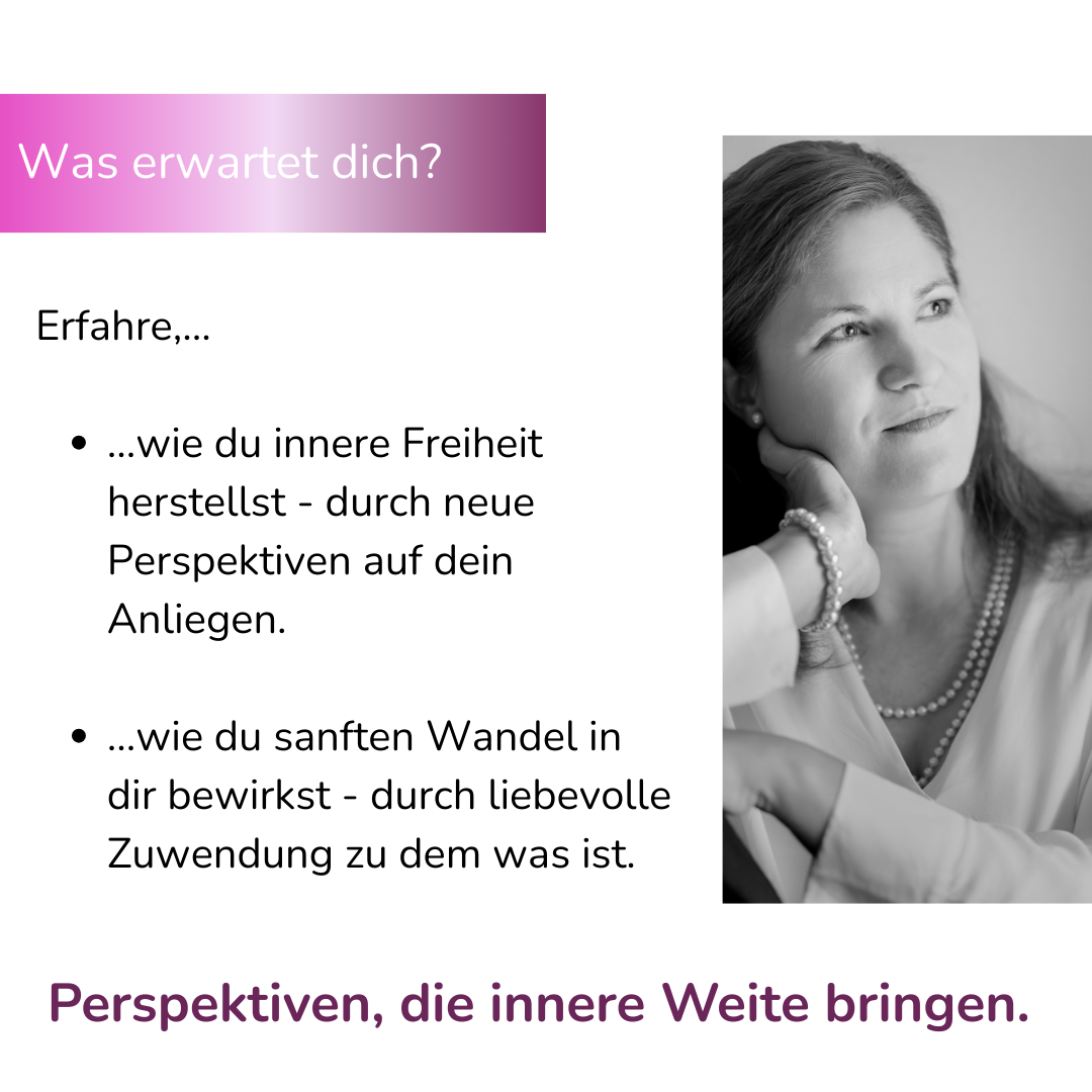 Du lernst die 10 Bausteine dieser Methode kennen, durch die du blitzschnell eine neue Perspektive einnimmst. Eine, die dir dient und innere Weite mit sich bringt.