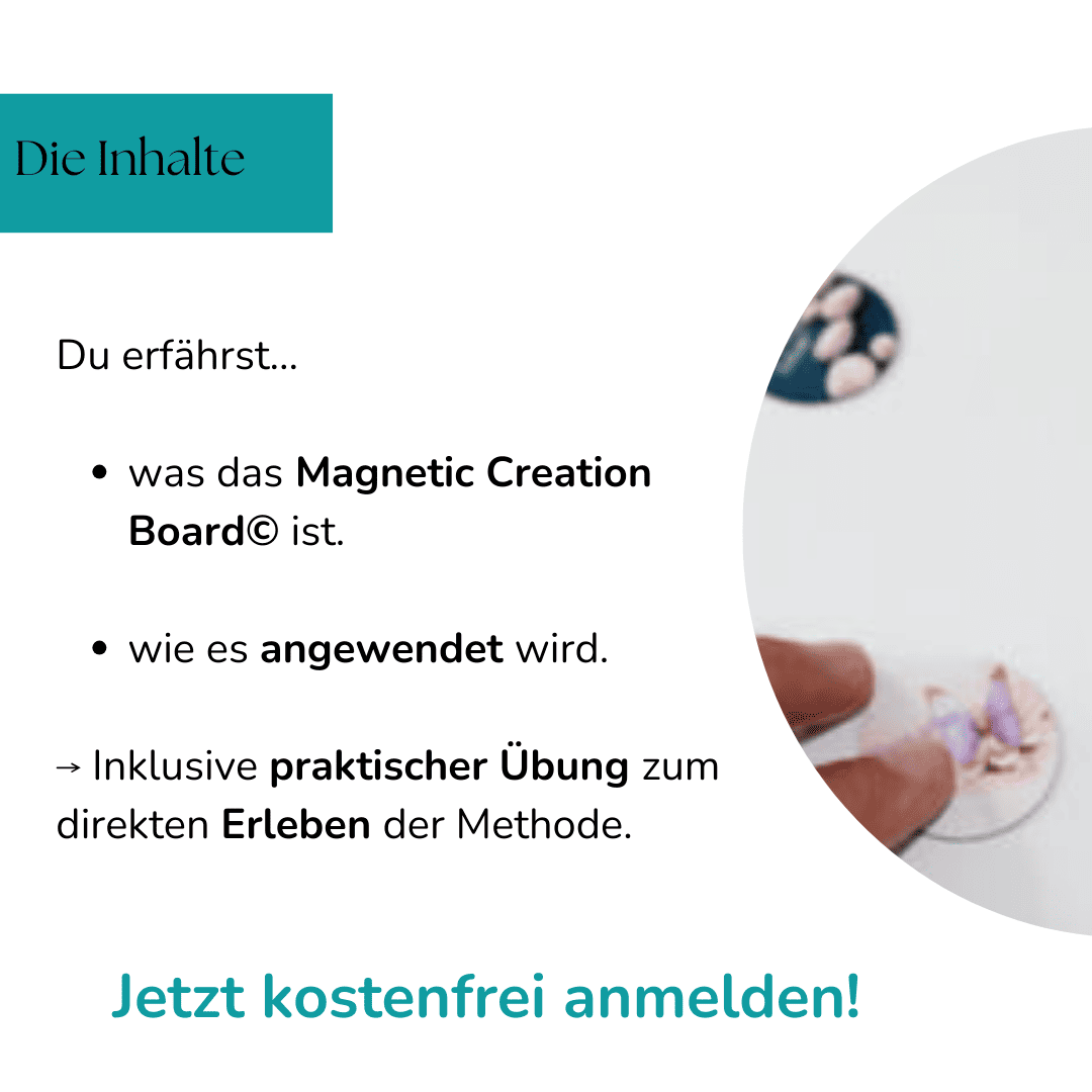 Das Magnetic Creation Board© ist ein kraftvolles und vielseitig einsetzbares Selbstcoaching-Tool, das dich in deiner persönlichen Entwicklung und Potenzialentfaltung unterstützt.